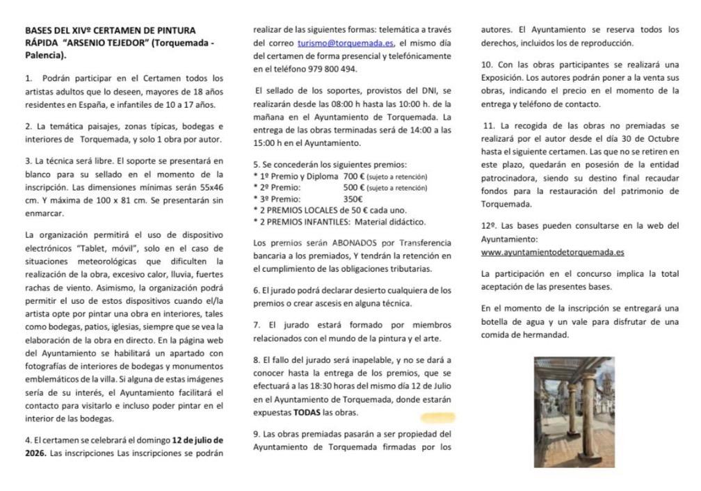 Bases del XIV Certamen de Pintura Rápida Arsenio Tejedor (Torquemada – Palencia).