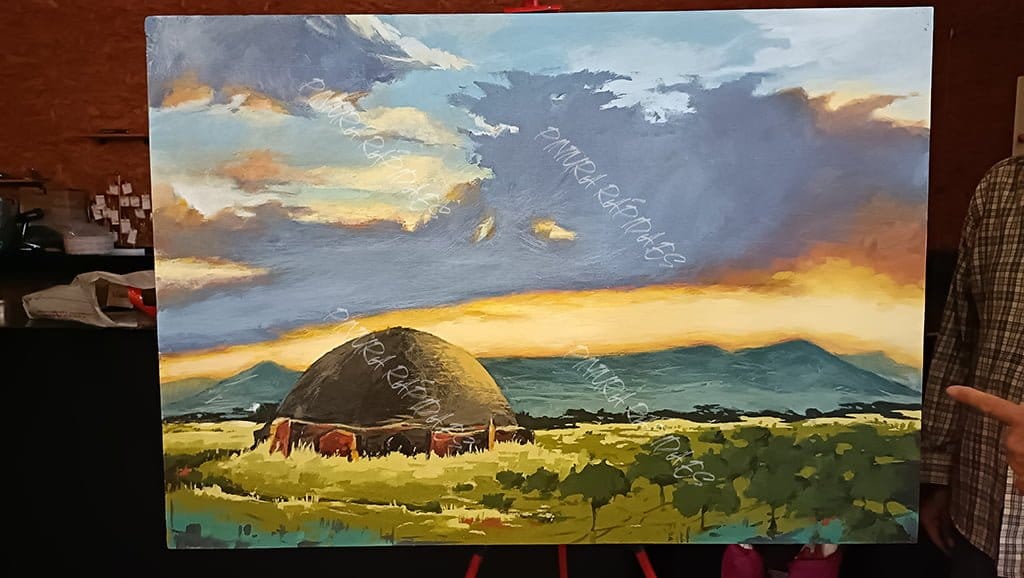 2. El estilo y técnica serán libres, siendo la medida mínima del lienzo 50×50 cm. En la categoría infantil la medida mínima será de 42×30 (DIN A3). Cada artista podrá sellar un máximo de dos lienzos (con el mismo número), con color uniforme y sin texturas. Sólo se podrá entregar a concurso una obra. El cuadro se pintará en el lugar escogido por el artista. Se descalificará a los artistas que no realicen el cuadro “in situ”. Los participantes deberán preocuparse del material necesario para la realización de la obra.