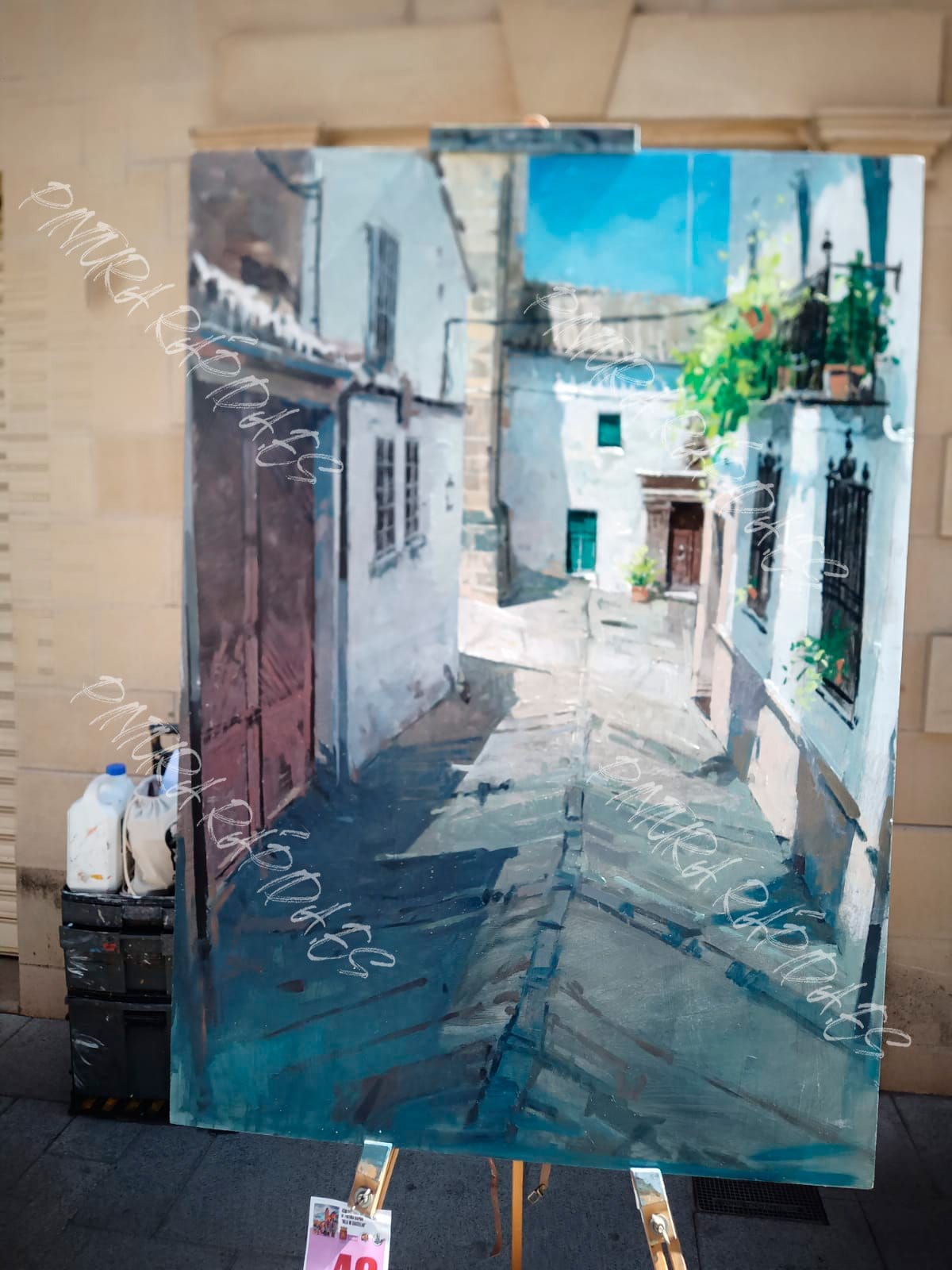 5º – Cada participante tendrá que presentar todo el material que pueda ser necesario para su obra, incluido el caballete, donde expondrá su pintura, sin marco ni cristal