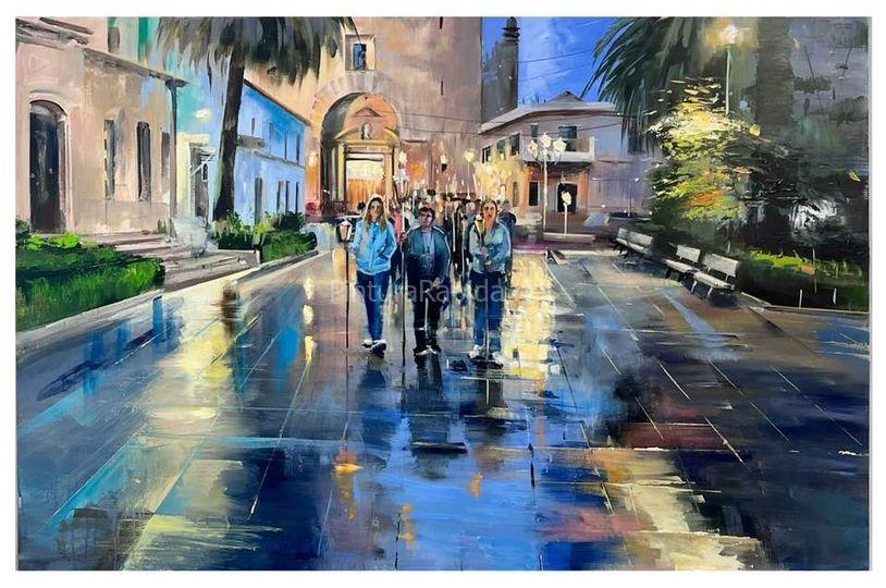 8º.- A las 17.00 h. finalizará el tiempo de realización, debiendo presentarse los concursantes con la obra terminada y sin firmar en la Plaza de la Constitución, acompañada de su caballete para la exposición.