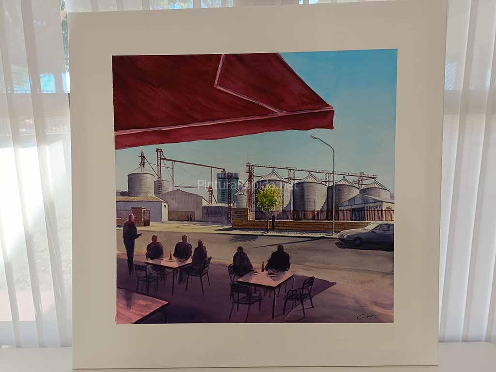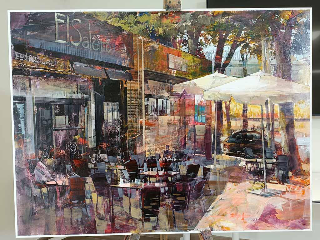 1er premio (1.000 euros): Blai Tomás Ibáñez, con su obra que captura la esencia de la vida cotidiana en Campollano y sus establecimientos de hostelería.