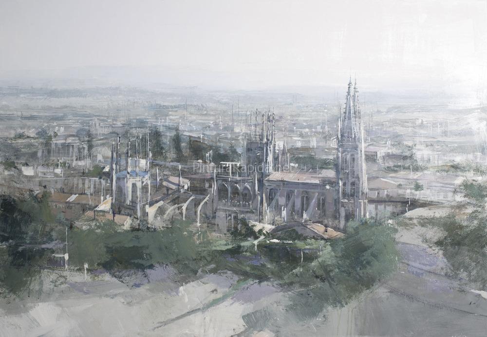 El segundo premio, dotado de 3.000 euros, ha sido para Gonzalo Prieto Cordero, quien ha recreado el paseo de Marceliano Santa María en su lienzo. El tercer premio, de 2.000 euros, ha sido otorgado a Juan José Catalá Paysán, quien ha apostado por una imagen de la torre sur de la Catedral.