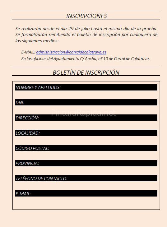 Se realizarán desde el 29 de julio hasta el mismo día de la prueba. Se formalizarán remitiendo el boletín de inscripción por cualquiera de los siguientes medios: