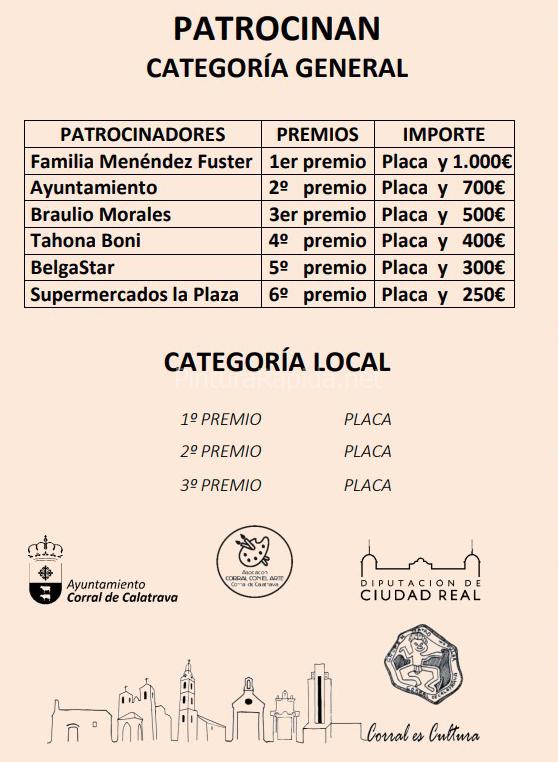 - Participantes: Podrán participar todos/as los/as que lo deseen, sean profesionales o aficionados. Se contemplan dos categorías: mayores de 16 años y categoría LOCAL (los/as que estén empadronados/as o hayan nacido en Corral de Calatrava).