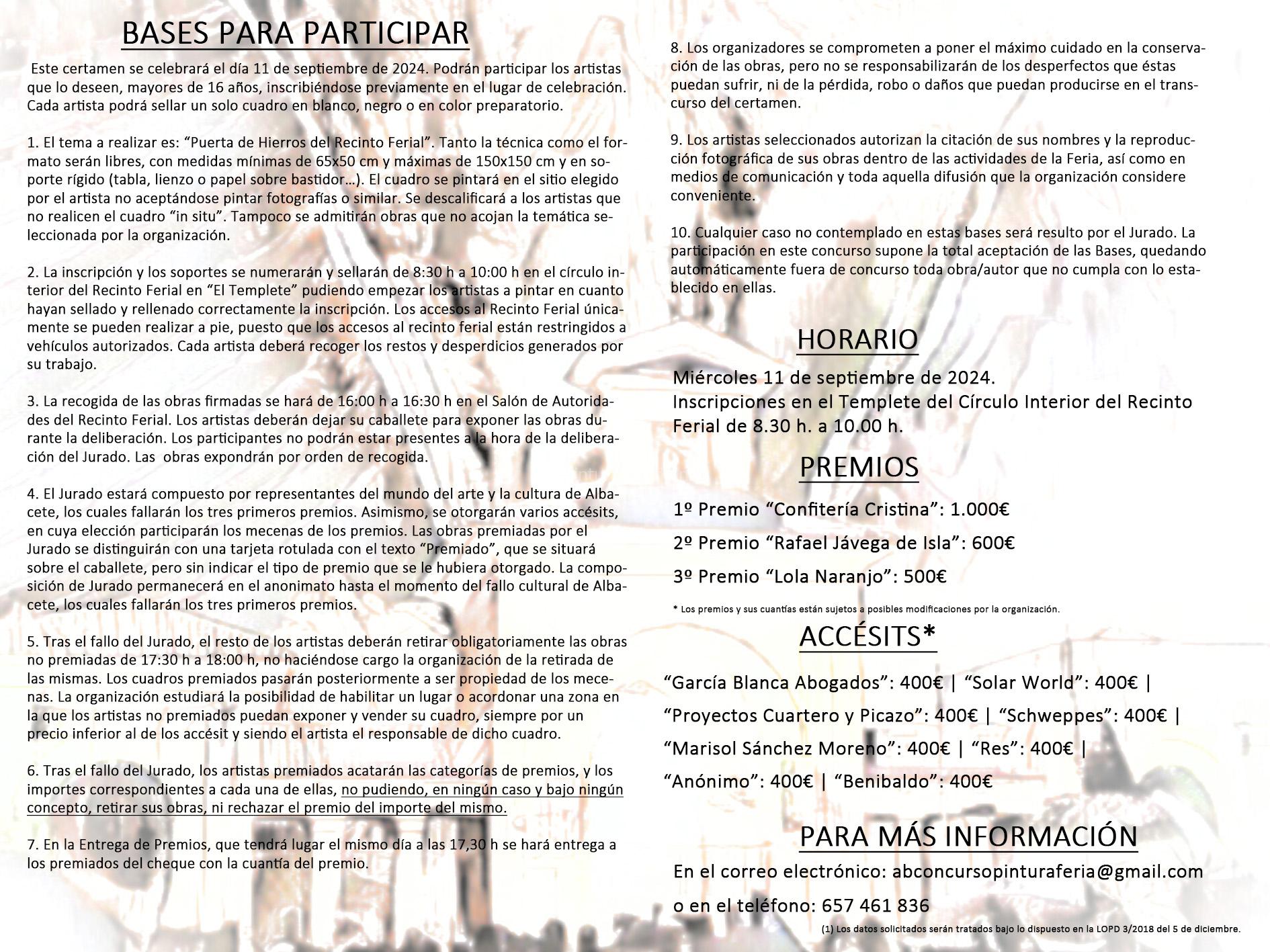 Bases Aportadas por Concurso de Pintura Rápida “Rincones del Recinto Ferial” de Albacete. 50 aniversario Puerta de Hierros.