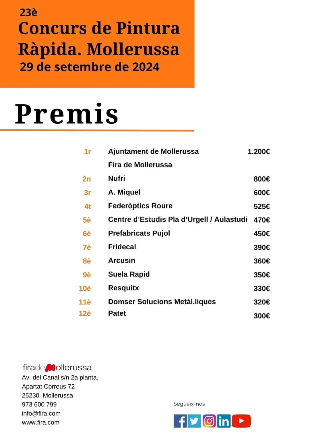 Las obras premiadas quedarán en propiedad de sus patrocinadores. Las obras no retiradas quedarán en propiedad de Fira de Mollerussa.