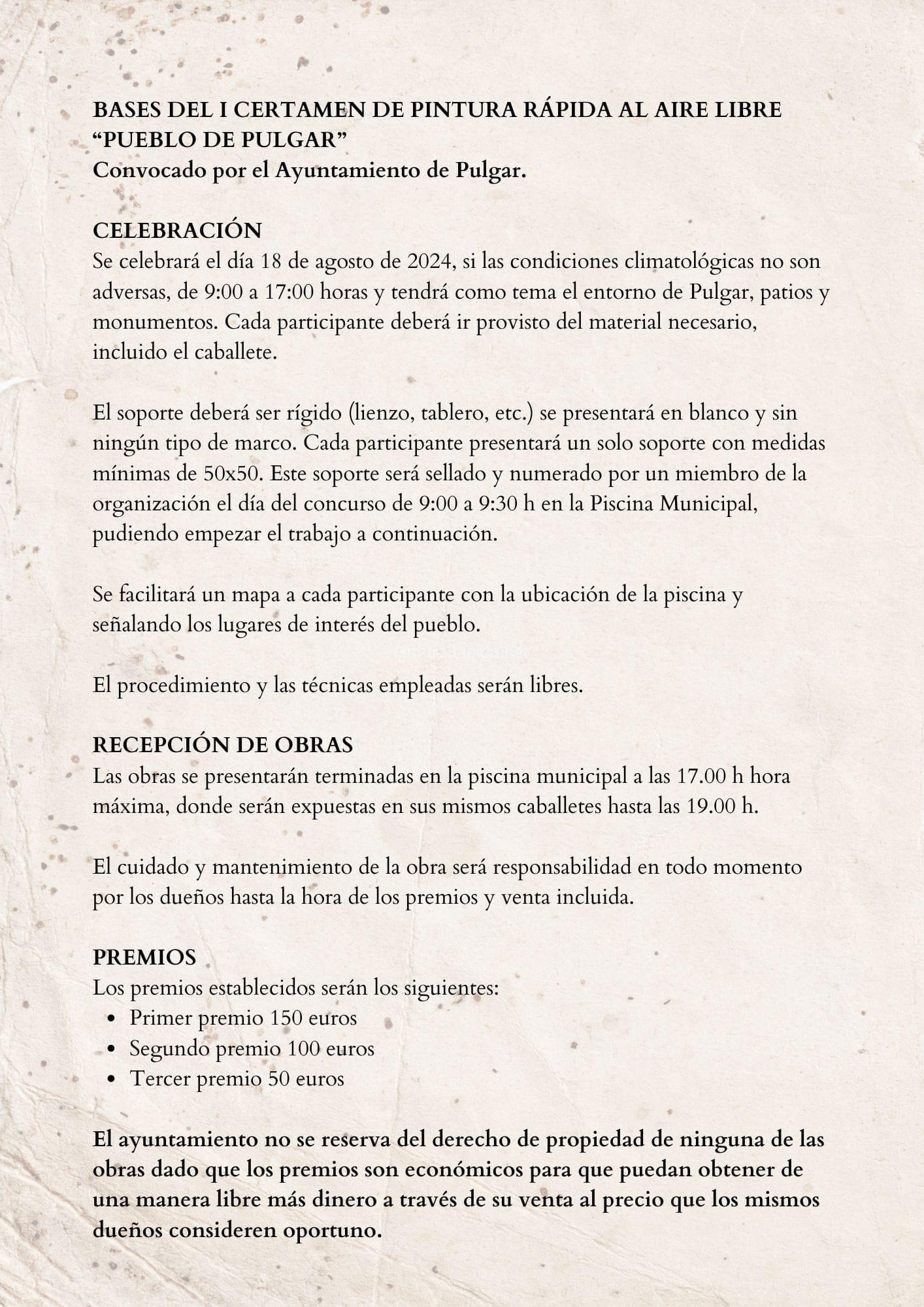 BASES DEL I CERTAMEN DE PINTURA RÁPIDA AL AIRE LIBRE “PUEBLO DE PULGAR”