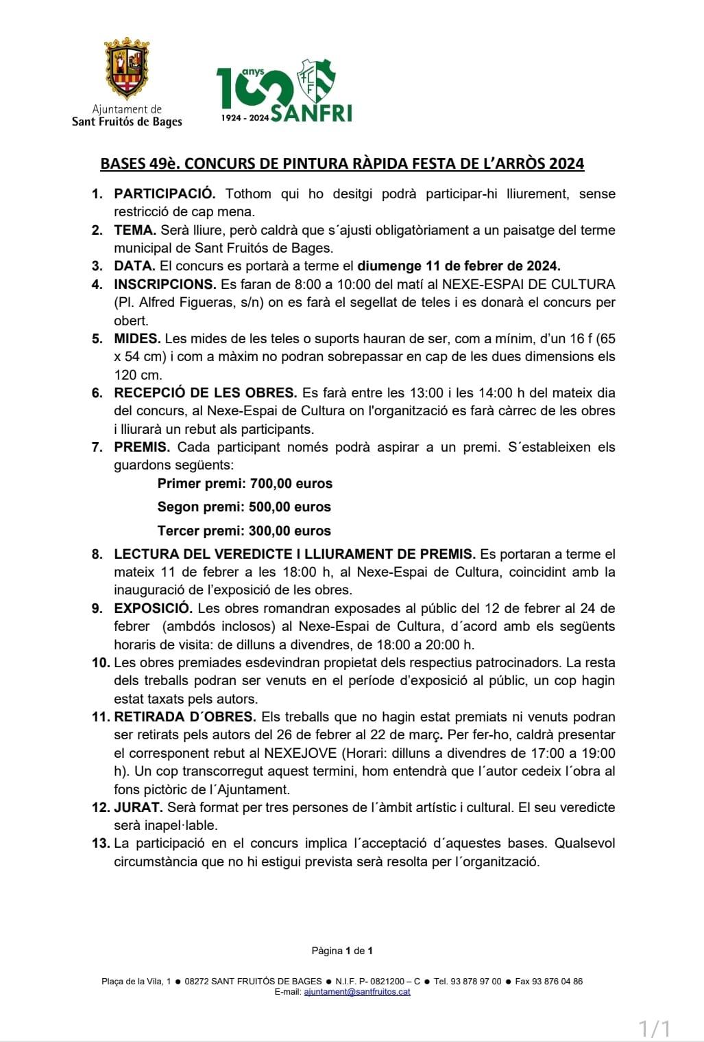 - TEMA. Será libre, pero deberá ajustarse obligatoriamente a un paisaje del término municipal de Sant Fruitós de Bages.