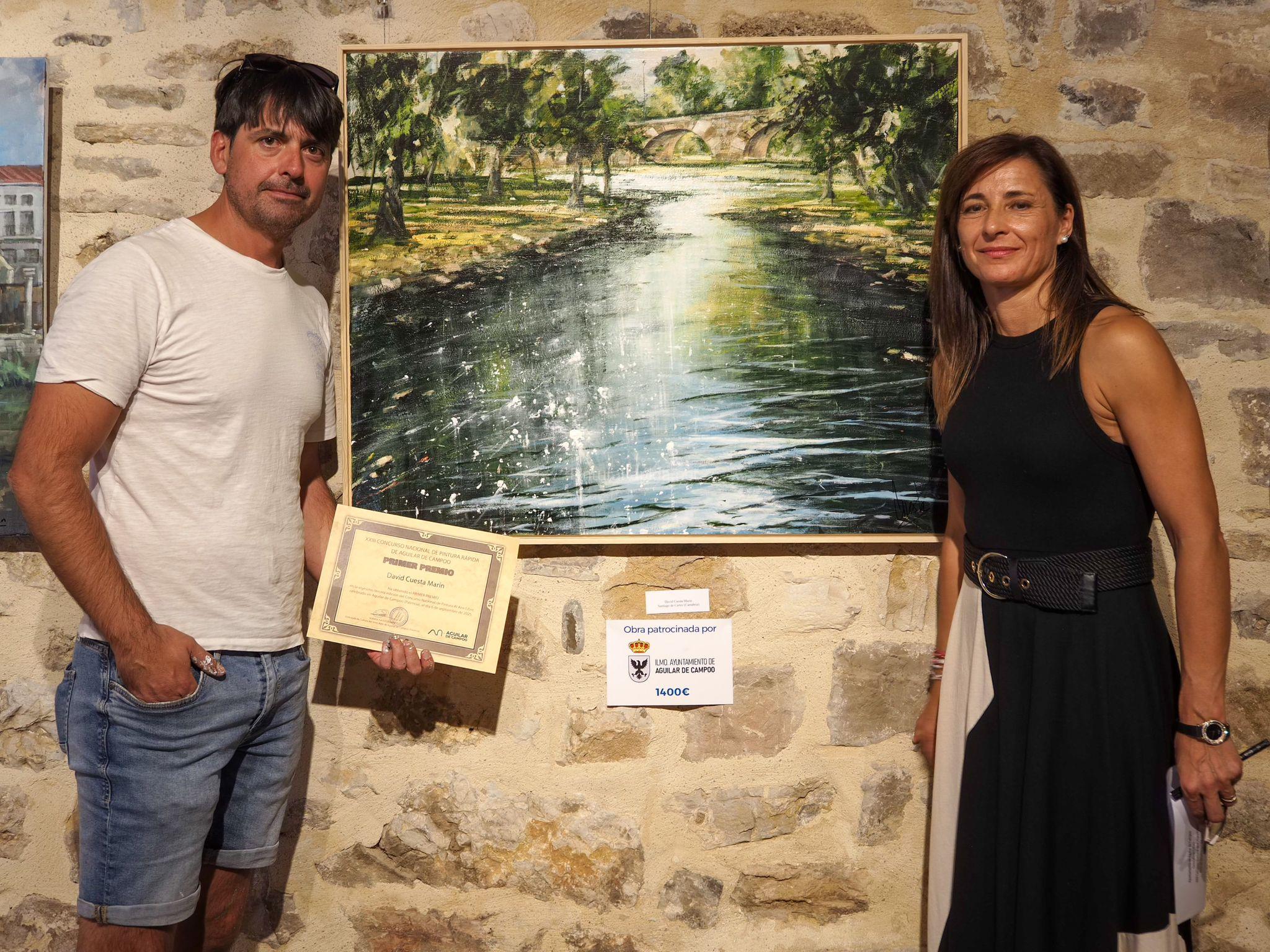 El jurado otorgó el primer premio, dotado con 1.400 euros y patrocinado por el Ayuntamiento, a David Cuesta Marín, natural de Santiago de Cartes (Cantabria), por una sugerente obra en la que capturó la atmósfera del río Pisuerga desde el puente de la Cascajera. Su propuesta convenció por unanimidad al jurado, destacando por su sensibilidad pictórica y dominio técnico.