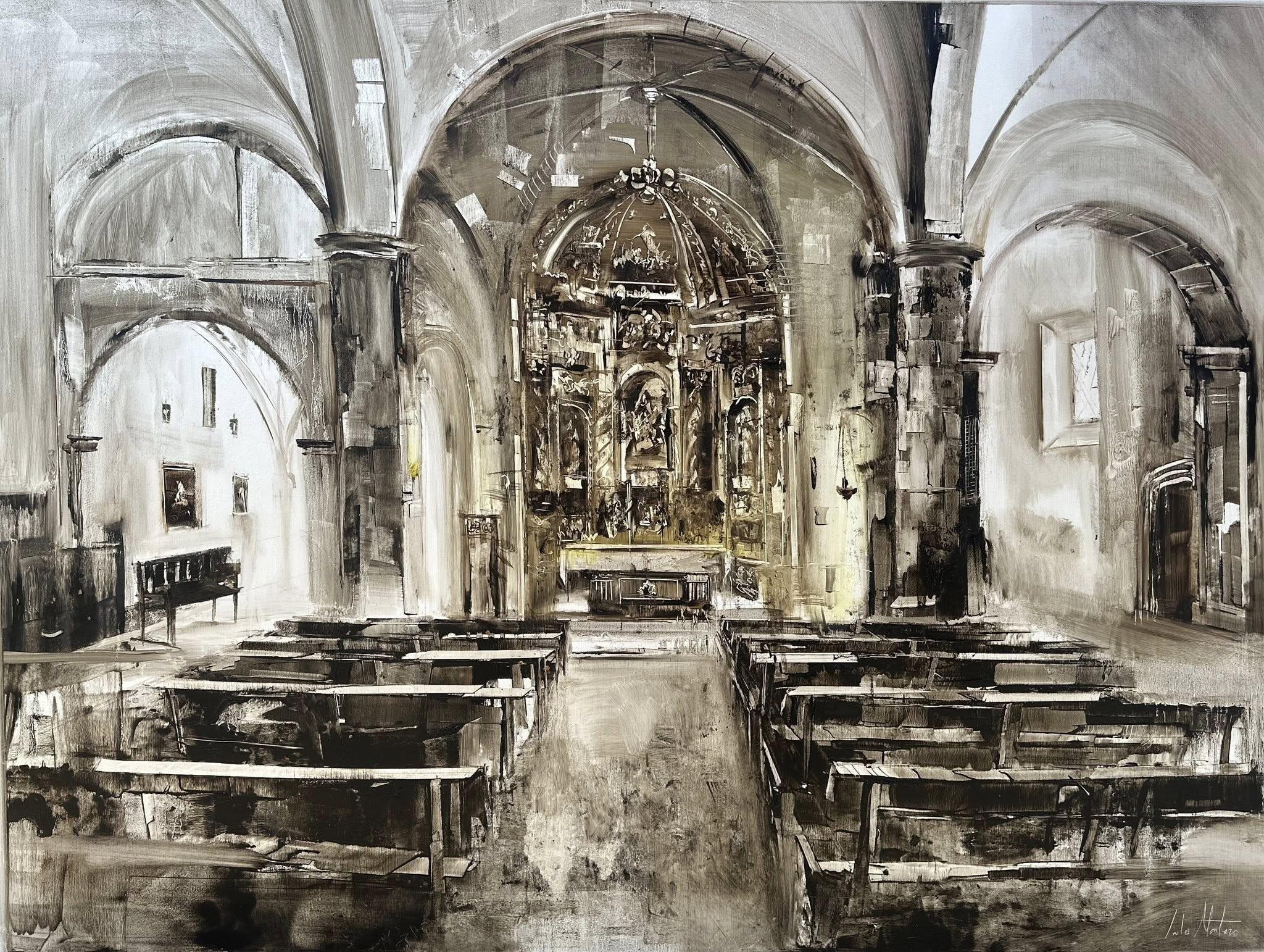 Carlos Montero gana el III Concurso de Pintura Rápida de Almadrones (Guadalajara) 2025 con una impactante vista interior de la iglesia