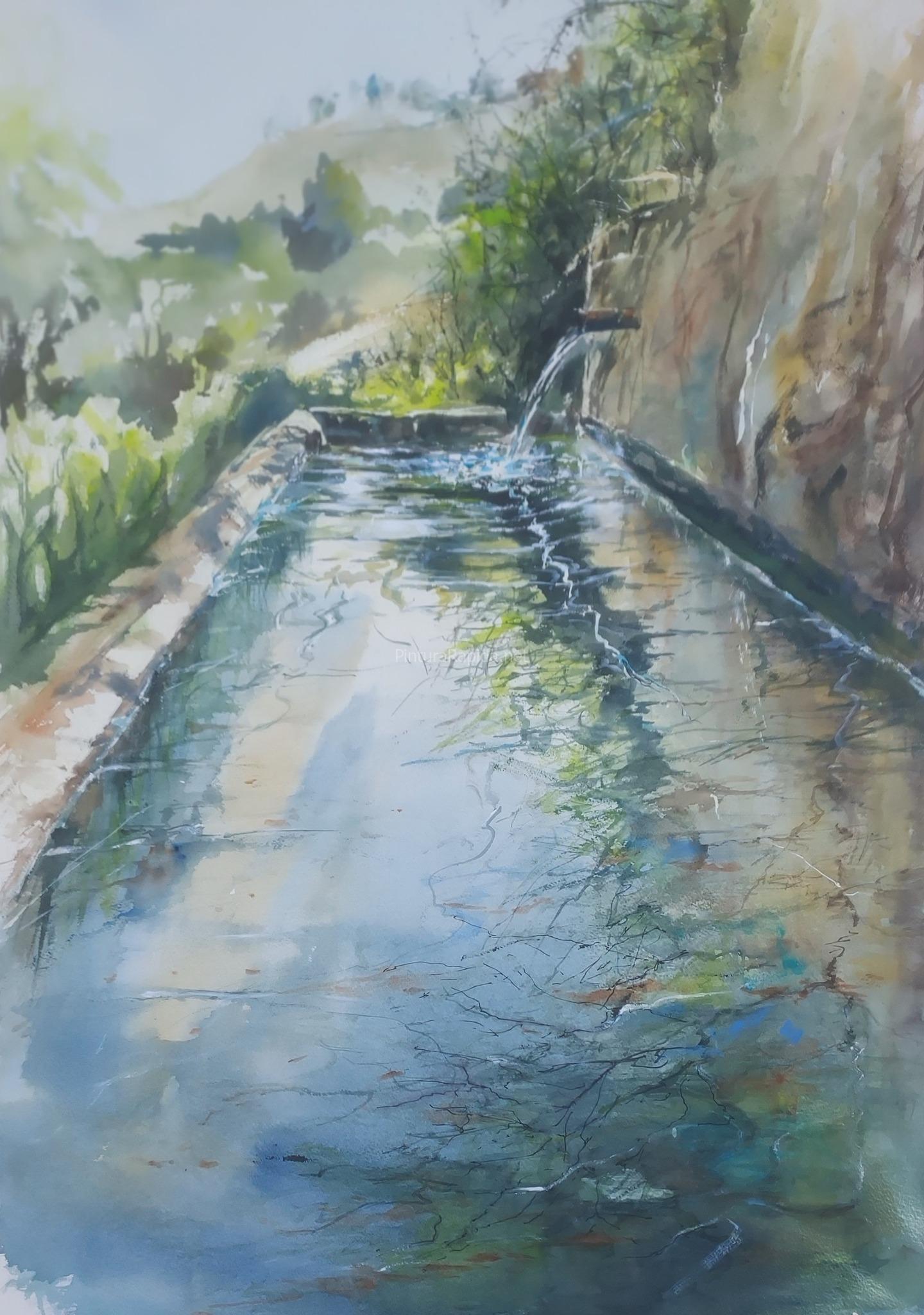 El tercer premio, de 500 euros, fue para María Luisa García Su obra, un reflejo cristalino del agua en una fuente natural, destacó por su técnica sutil y la serenidad transmitida en su composición.