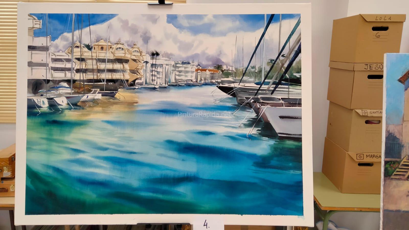 El segundo premio, dotado con 600 euros, fue para Francisco Peralta, que capturó con gran sensibilidad la atmósfera del Puerto Deportivo de Benalmádena, un tema que también inspiró al tercer clasificado, Cristóbal León, premiado con 500 euros por su obra igualmente ambientada en este enclave marinero.