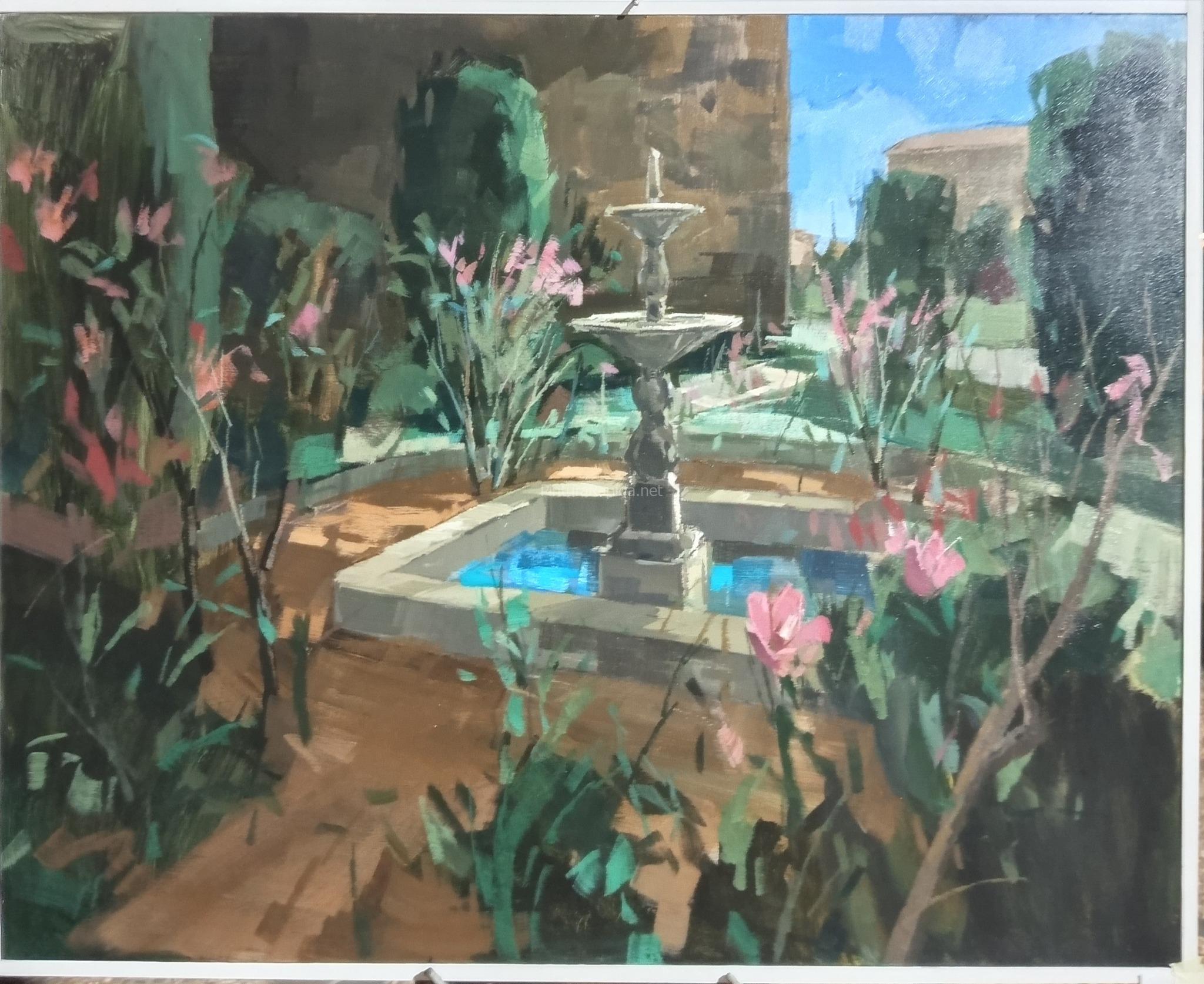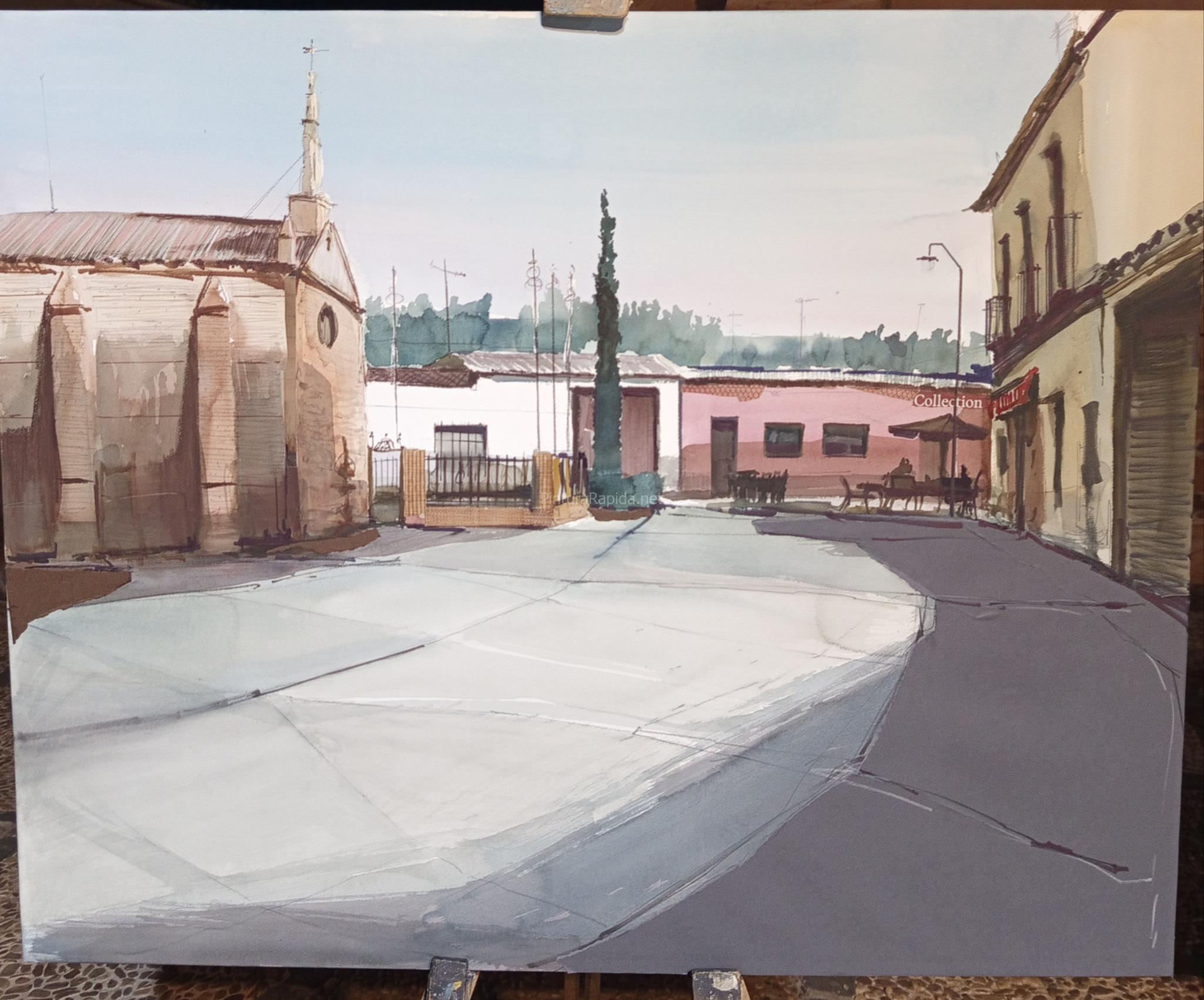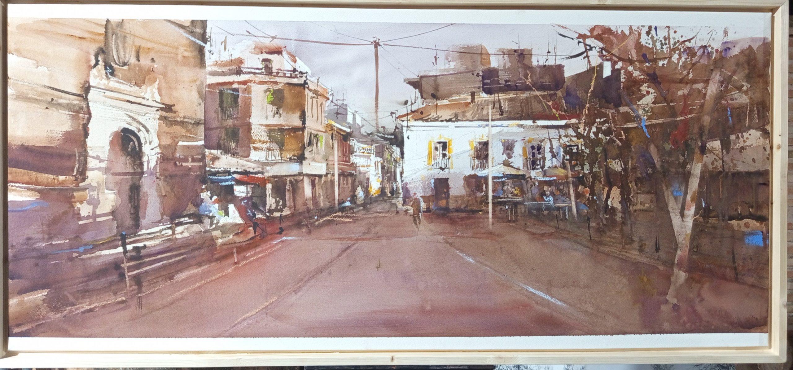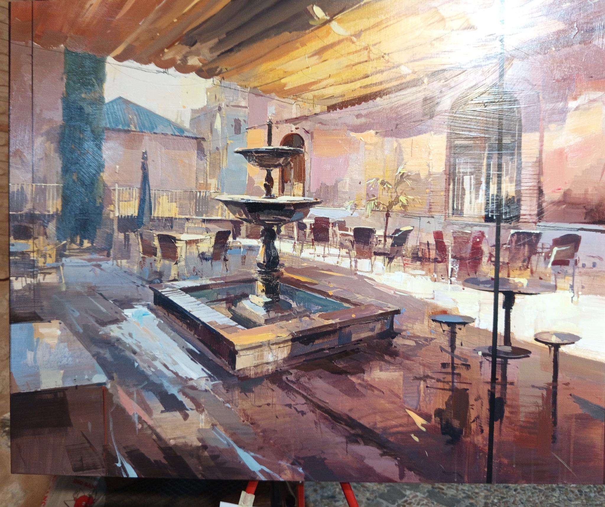 El XXIX Certamen de Pintura Rápida Villa de … volvió a llenar de color y creatividad las calles del municipio en una jornada en la que se respiró arte desde primera hora de la mañana. El primer premio, dotado con 1.000 euros, fue para Cristóbal León, que conquistó al jurado con una obra de gran luminosidad en la que retrató una fuente en el centro de una plaza, envuelta en sombras cálidas y reflejos vibrantes.