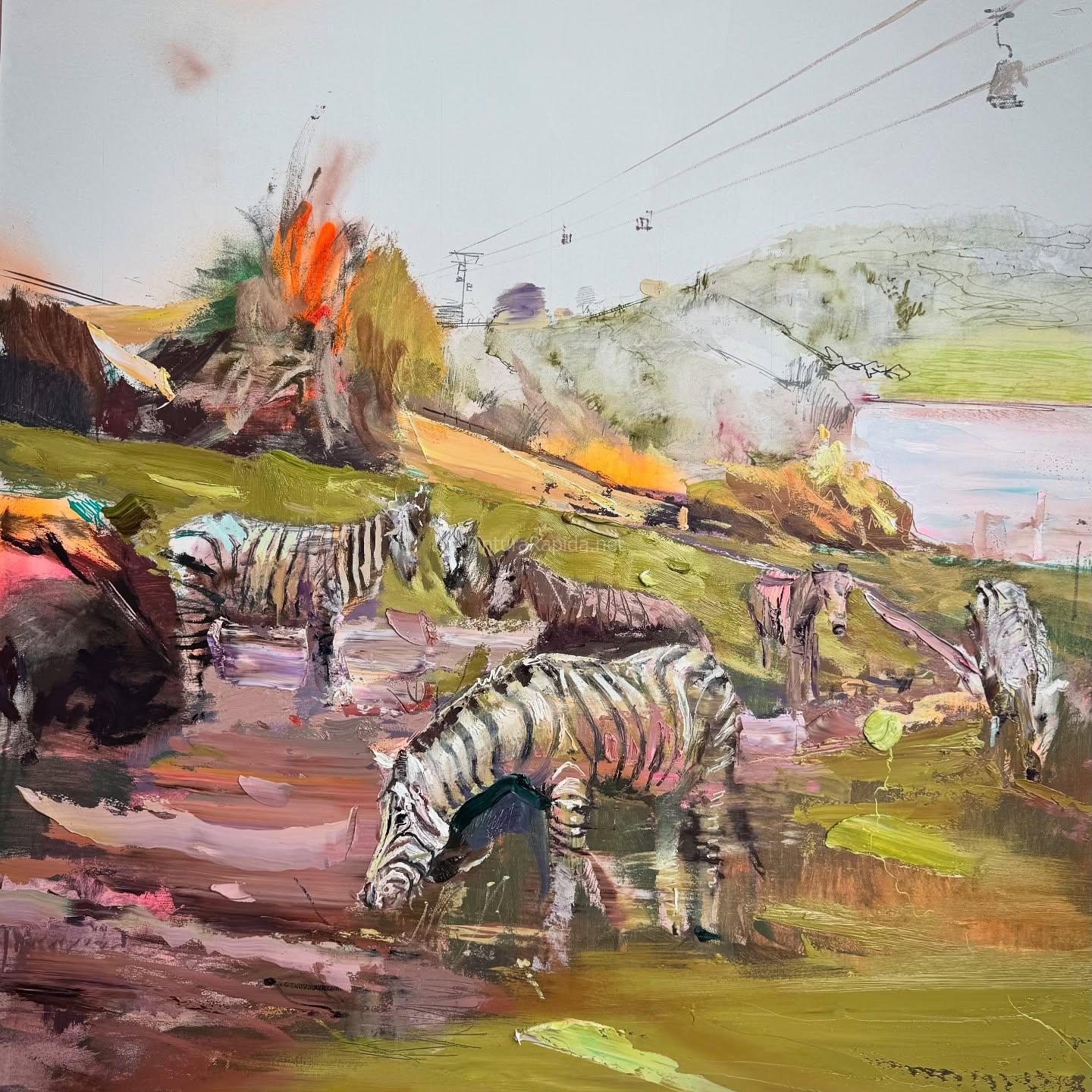 El Parque de la Naturaleza de Cabárceno celebró ayer la cuarta edición de su Concurso Nacional de Pintura al Aire Libre, que reunió a 35 artistas llegados de distintos puntos de España en una jornada marcada por la creatividad y la belleza natural del entorno. El ganador fue el gallego Andrés Gabarres, natural de El Ferrol, que se alzó con el primer premio dotado con 2.000 euros gracias a una obra en óleo acrílico sobre lienzo en la que plasmó un paisaje característico del parque con unas cebras comunes en primer plano, el lago sexta al fondo y las cabinas del teleférico sobrevolando la escena.