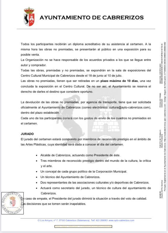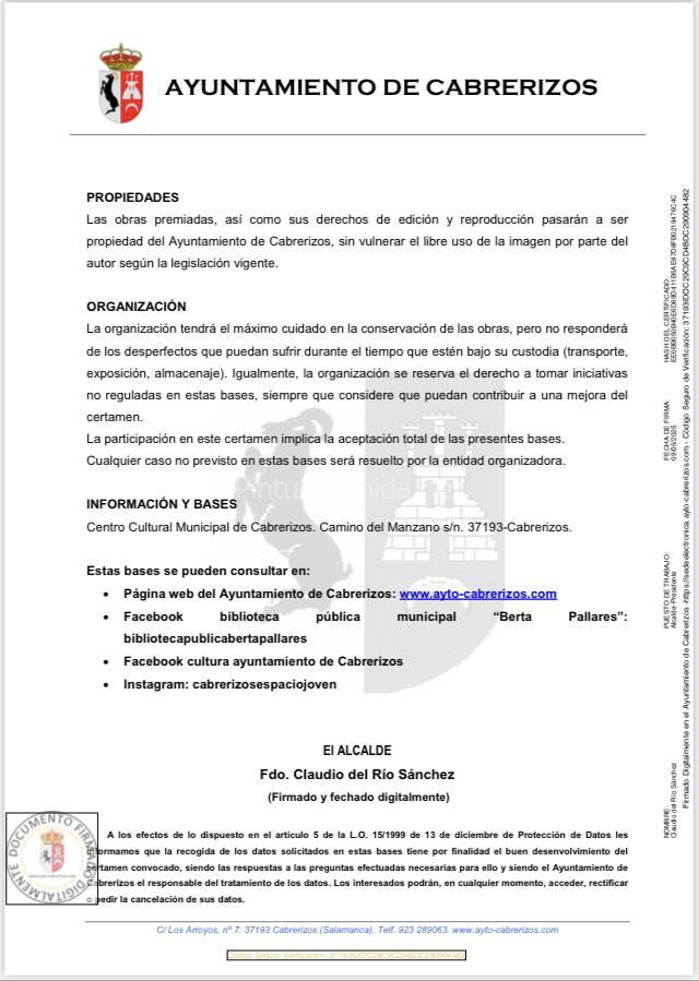 Las obras premiadas, junto a sus derechos de edición y reproducción, pasarán a ser propiedad del Ayuntamiento de Cabrerizos, respetando el uso libre de imagen del autor.