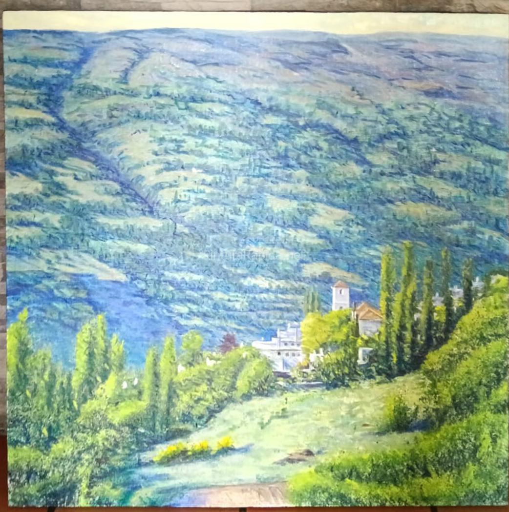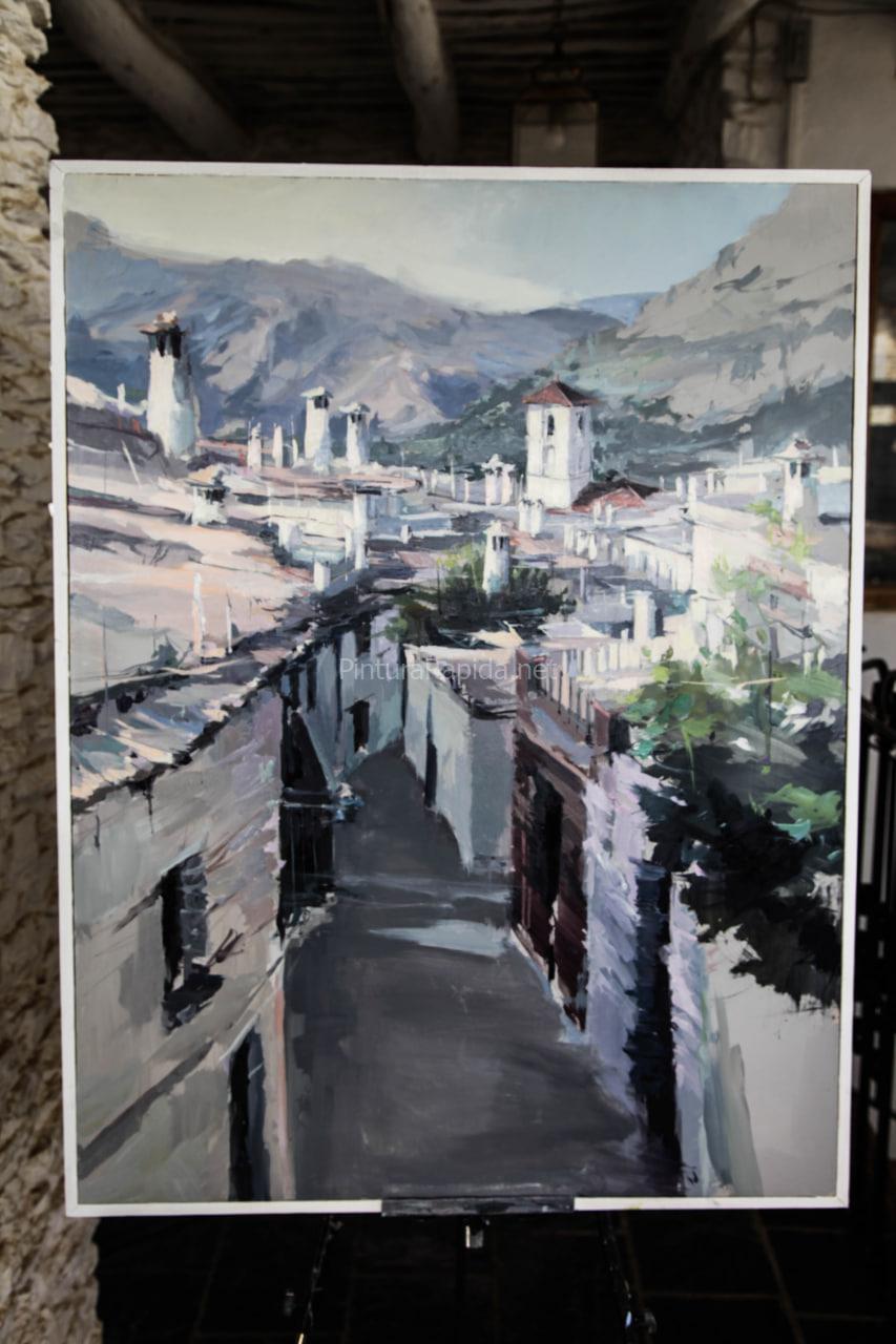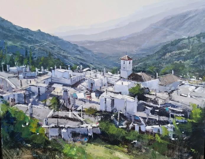 El cuarto galardón, con 400 euros, fue para José Antonio Muñoz, quien ofreció una mirada más abierta del paisaje que rodea Capileira, con una pincelada detallista y luminosa que conecta el entorno natural con el caserío blanco.