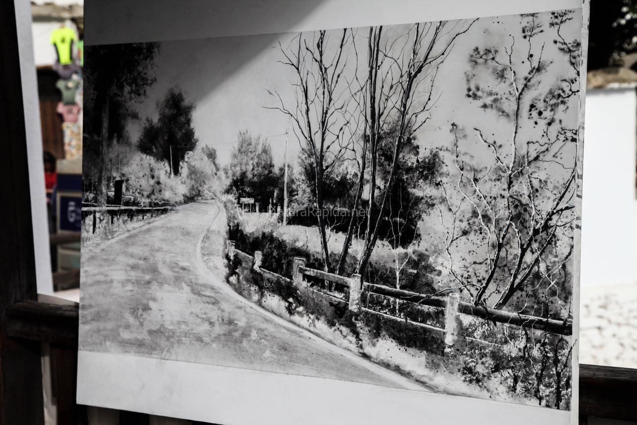 El segundo premio, dotado con 800 euros, fue para Ana Sánchez Lucas, quien presentó una obra cargada de fuerza plástica y perspectiva urbana, con una atmósfera que invita a recorrer visualmente las calles encaladas y estrechas del pueblo.