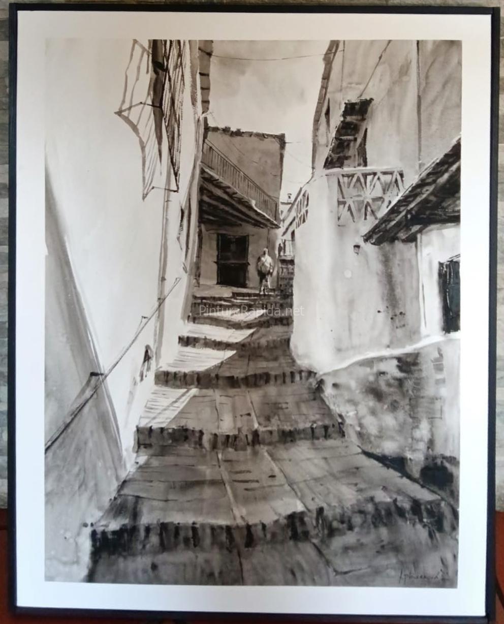 Federico Plasencia obtuvo el tercer premio (600 euros) con una pintura monocromática que representa una empinada escalera típica de la arquitectura local, cargada de luz, sombras y texturas que aportan gran expresividad.