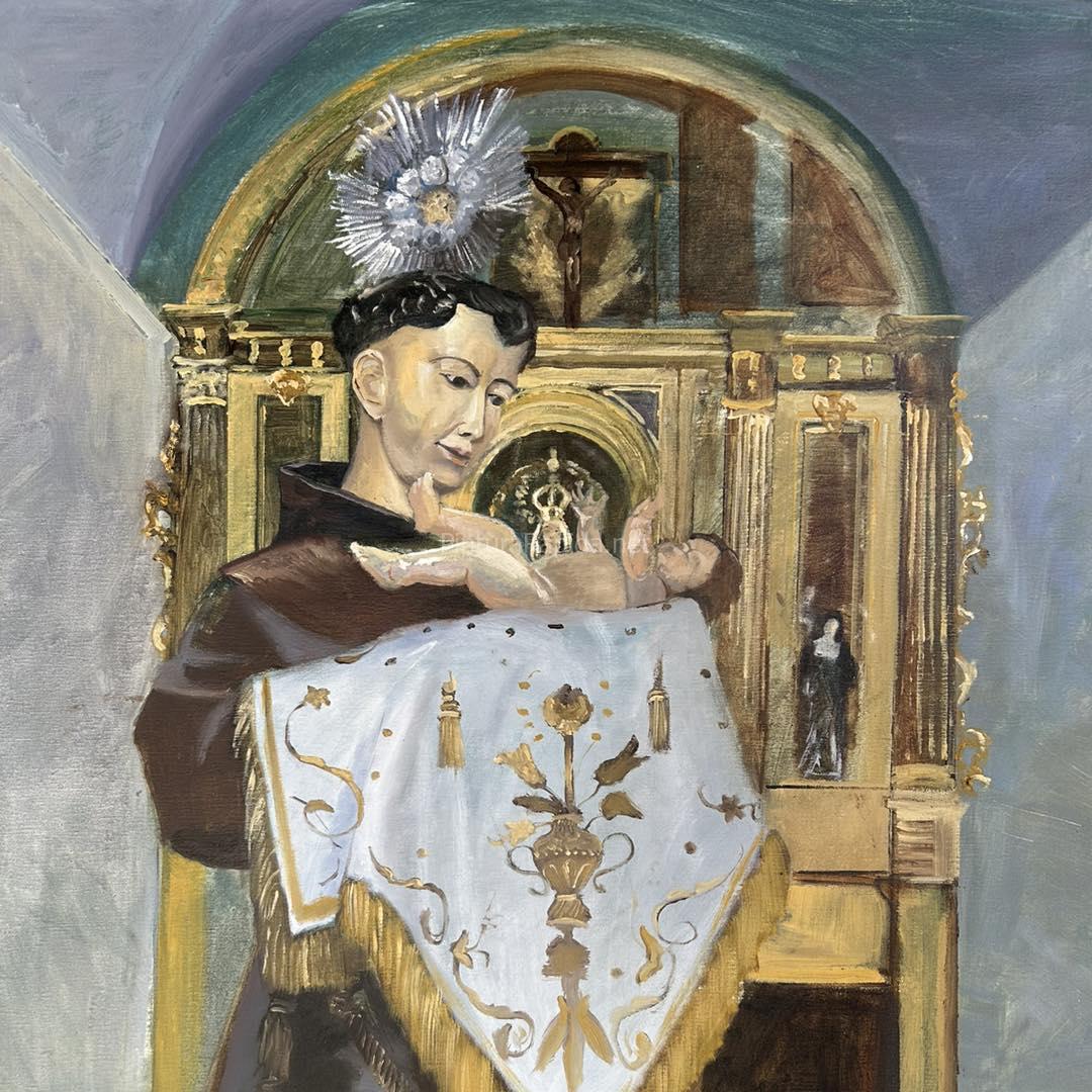 El jurado otorgó el Primer Premio a Patricia Jiménez, que sorprendió con una imponente y delicada interpretación de San Antonio de Padua sosteniendo al Niño Jesús. Su obra, de técnica exquisita y paleta envolvente, transmite una devoción profunda y una fuerza visual que emocionó tanto al jurado como al público. El halo luminoso que corona la cabeza del santo y la ternura del gesto captado en la pintura fueron elementos determinantes para que su cuadro se alzara como el gran vencedor del certamen.