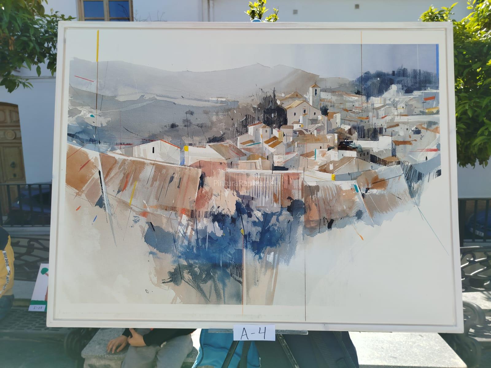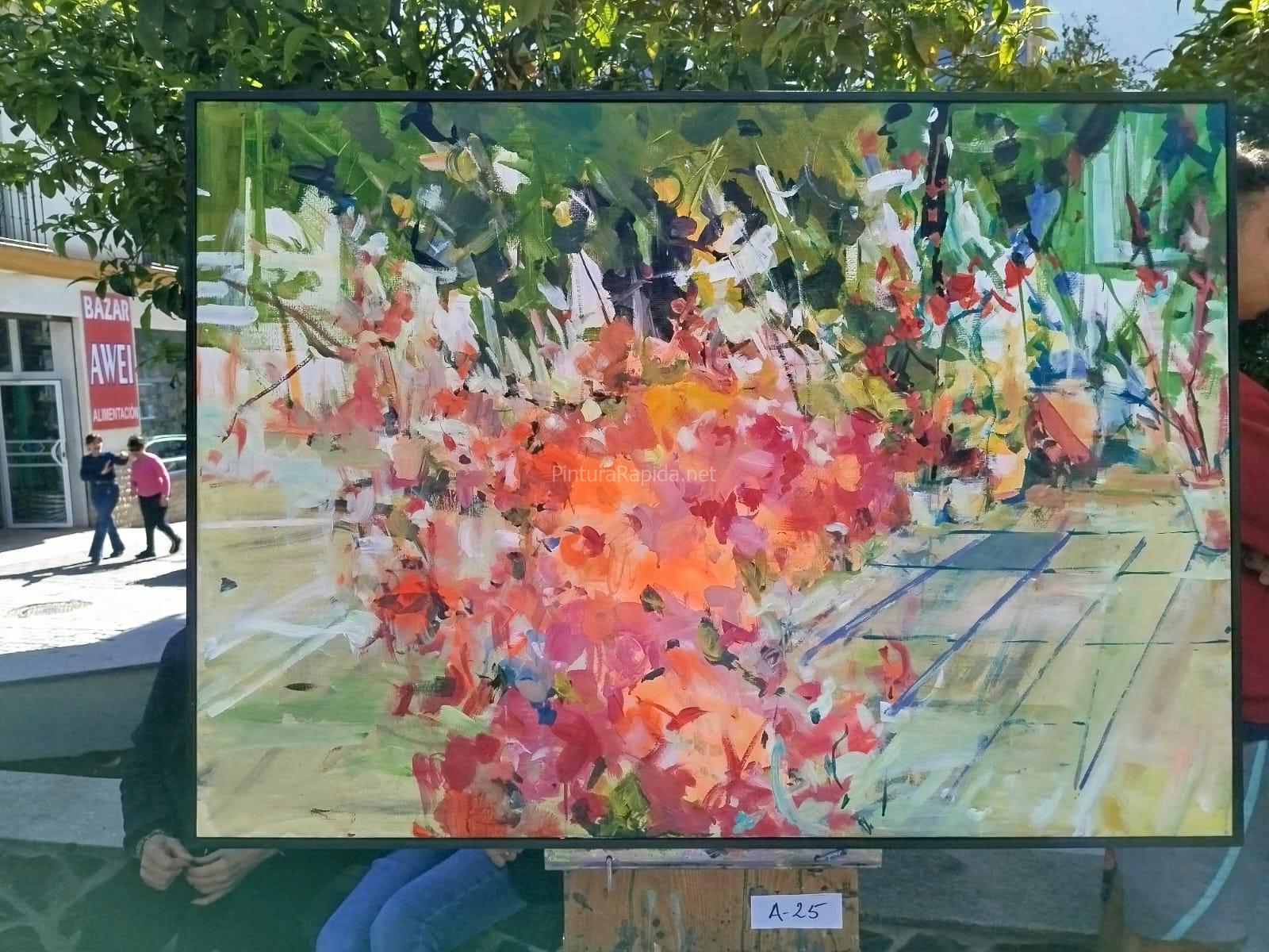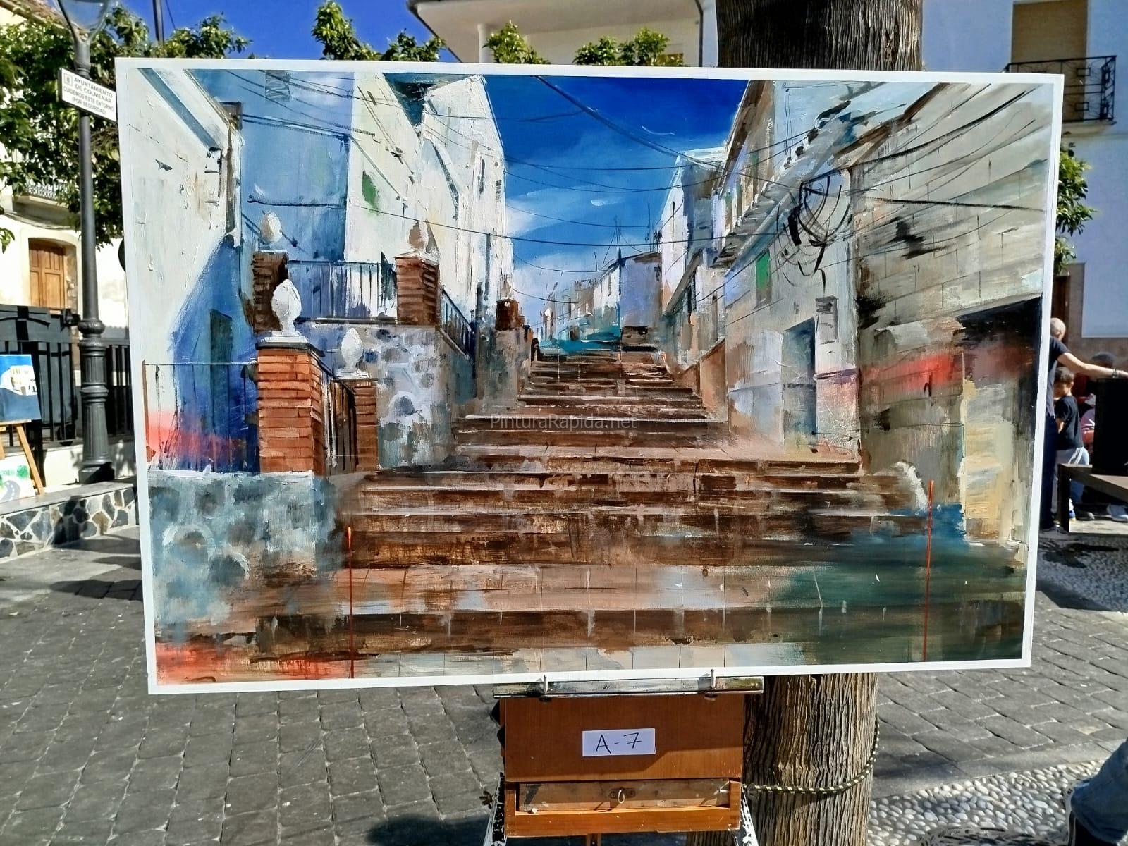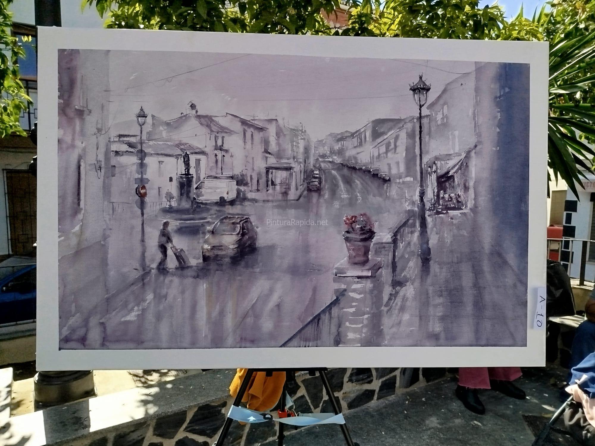 Un concurso de Rápida donde el despropósito generalizado reina. La incoherencia de la organización, la falta de criterio del jurado por no decir, la incompetencia o la parcialidad era evidente. Las obras expuestas se ocultaban entre una multitud de personas que aparecían en la plaza para no se que evento. Bebiendo y charlando en grupos, los niños en multitud, en espera de su recompensa. Los pintores al cuidado de que ninguna pelota tirara el caballete… Un “cachondeo” en toda regla. Se lo tienen que mirar, porque no recomendaría volver a participar.