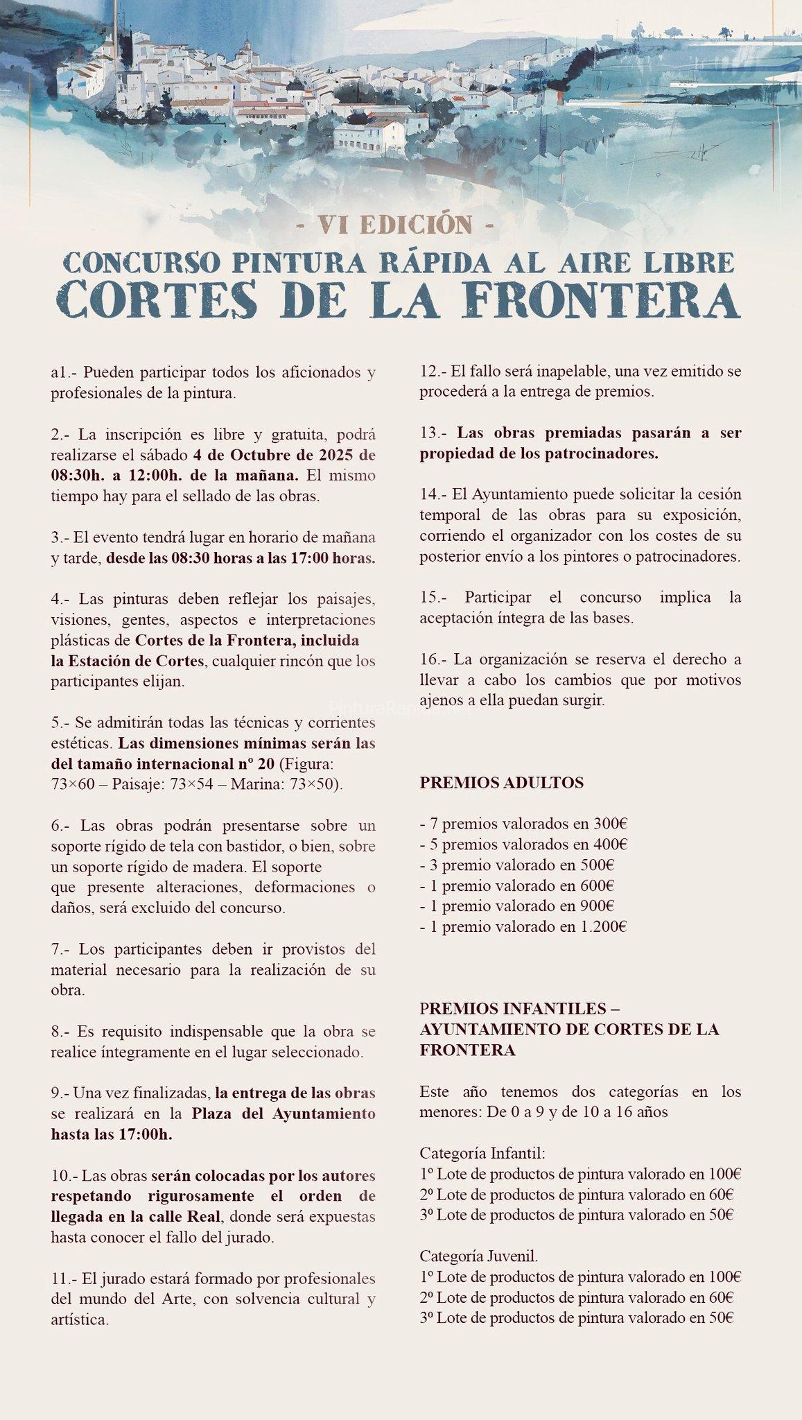 4.- Las pinturas deben reflejar los paisajes, visiones, gentes, aspectos o interpretaciones plásticas de Cortes de la Frontera, incluida la Estación de Cortes, cualquier rincón que los participantes elijan.