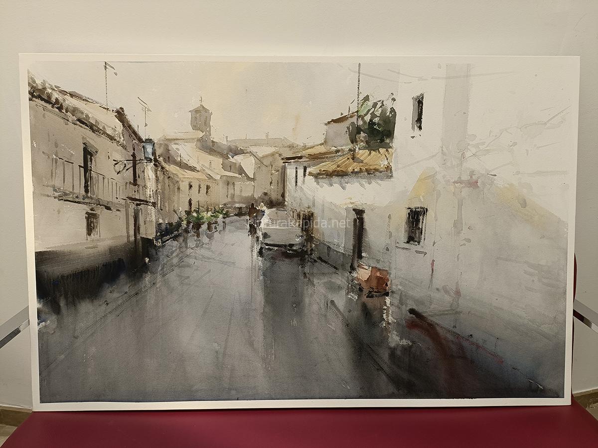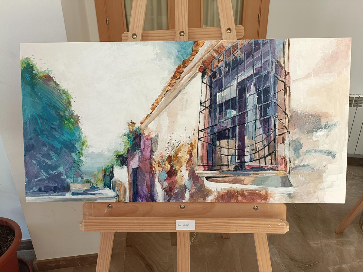 El gran ganador del día fue Miguel San Pedro, quien se alzó con el primer premio, dotado con 800 euros, gracias a una composición urbana en perspectiva, donde la luz y las texturas de las fachadas aportan una atmósfera vibrante y cercana. Su obra transmite la calma del entorno con una ejecución limpia y una paleta equilibrada.