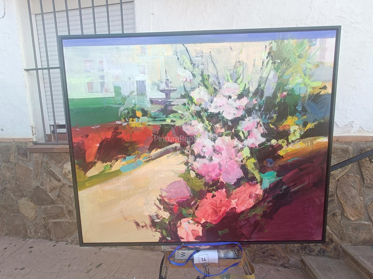 7º. Las obras tienen que ser presentadas antes de las 17:30 h, debiendo estar los concursantes con la obra terminada y sin firmar en el lugar correspondiente que señale la organización. Si la obra se encuentra en otro lugar, quedará descalificada. El jurado comenzará la deliberación a partir de las 17:30 h. La obra quedará expuesta en su caballete hasta las 17:30 h, hora prevista para el fallo del jurado.