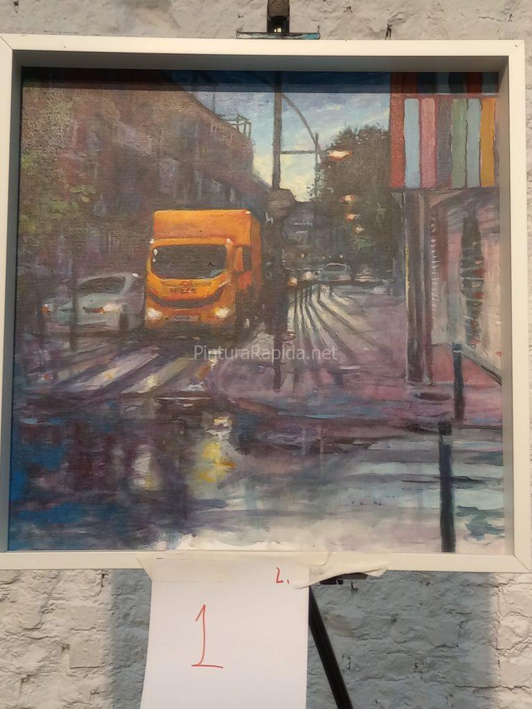 La pintura rápida se realiza en vivo el día del certamen sobre soporte sellado previamente.