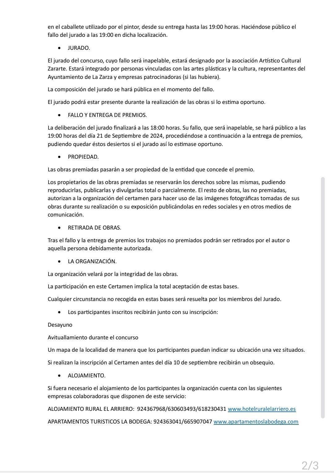 El jurado será designado por la Asociación Artístico Cultural Zararte y estará compuesto por personas vinculadas al mundo del arte, representantes del Ayuntamiento de La Zarza y patrocinadores (si los hubiera).