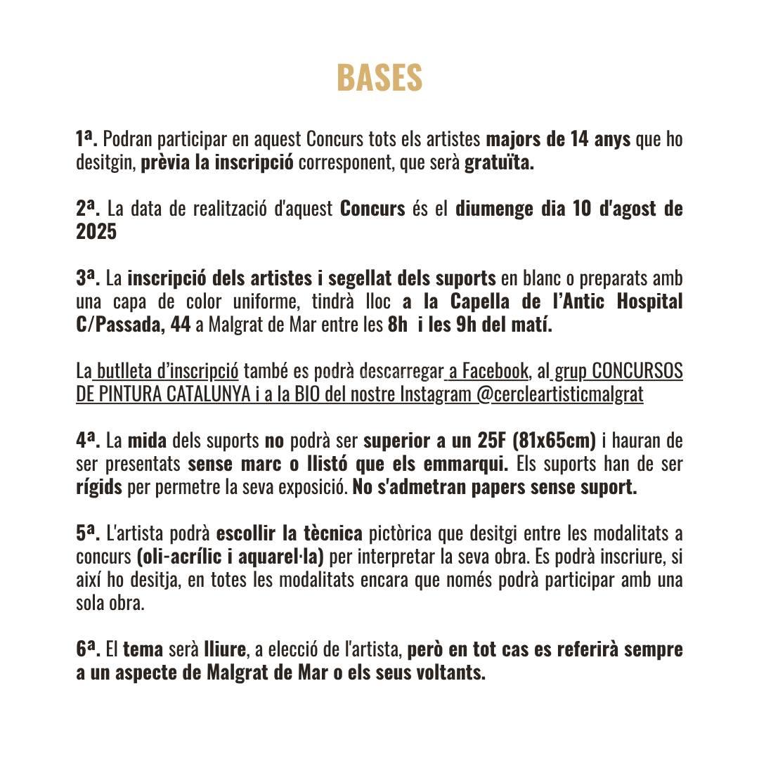 También se podrá descargar el formulario de inscripción desde el grupo de Facebook Concursos de Pintura Catalunya o desde la bio de Instagram @cercleartisticmalgrat.