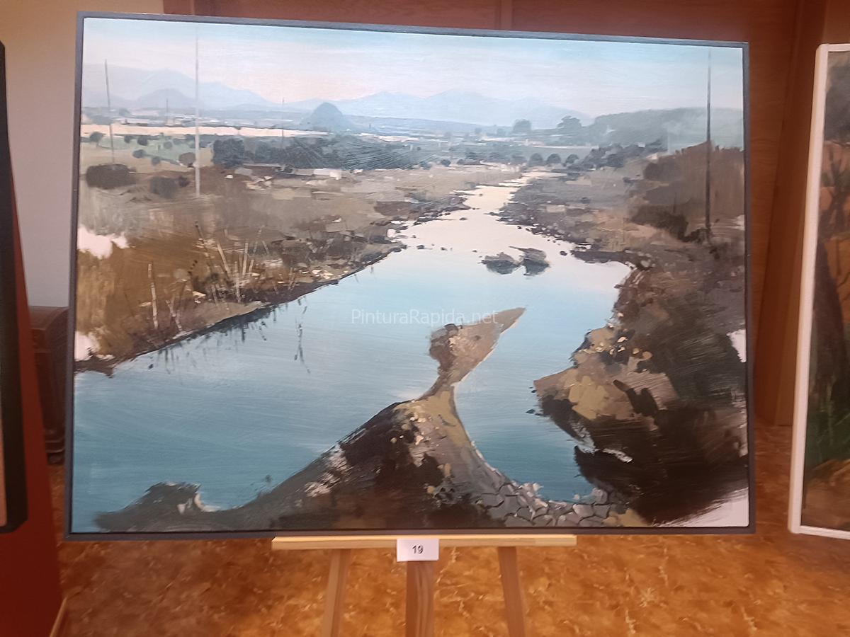 El primer premio, dotado con 2.500 euros, fue para el granadino Miguel Ángel Rivas Megías, gracias a una pintura centrada en la Rambla de Las Moreras que cautivó al jurado por su composición y ejecución. La obra, patrocinada por el Ayuntamiento de Mazarrón, muestra una perspectiva naturalista de este paraje emblemático, destacando los reflejos en el agua y los tonos cálidos del paisaje al atardecer.