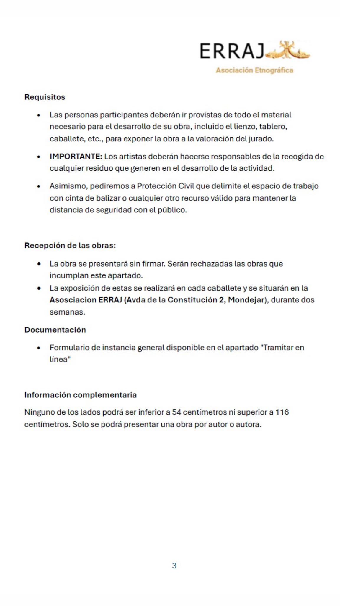 Mayores de 16 años cuyas obras hayan sido seleccionadas, pero no premiadas y expuestas en la sede de la Asociación Erraj.