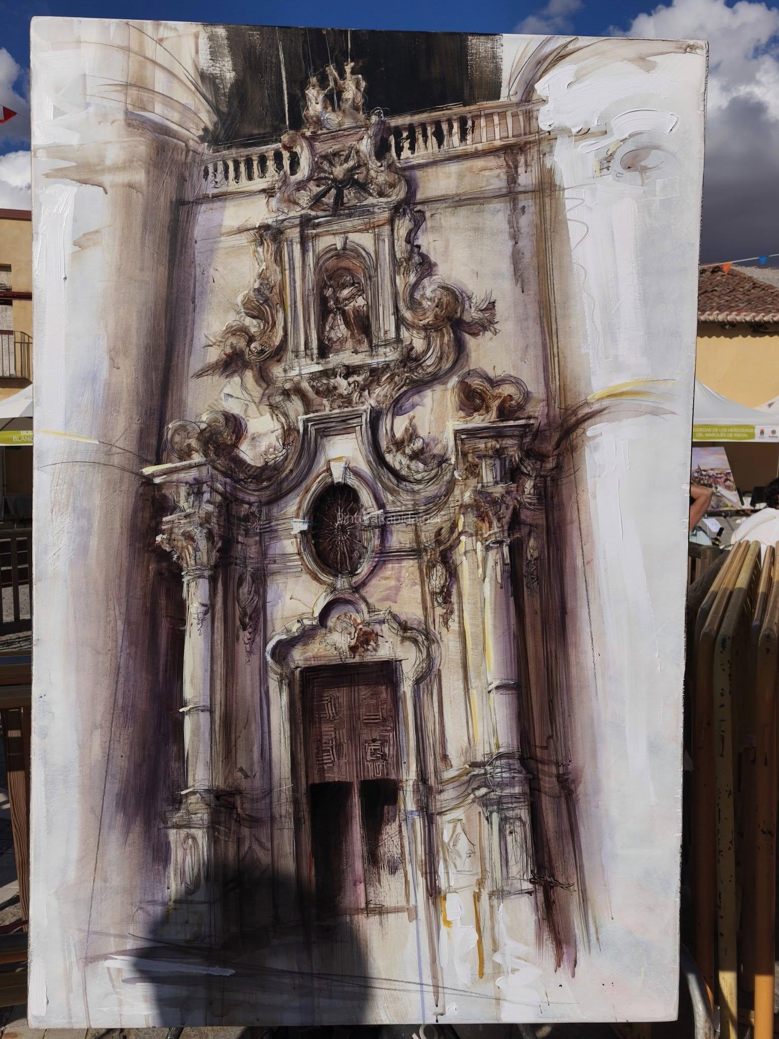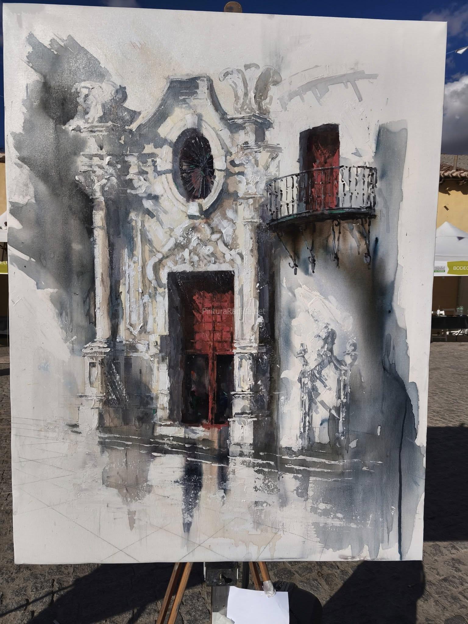 En tercer lugar fue galardonado Abraham Pinto, con una obra centrada en una portada monumental de gran riqueza ornamental, realizada con su característico trazo enérgico y uso expresivo del color.