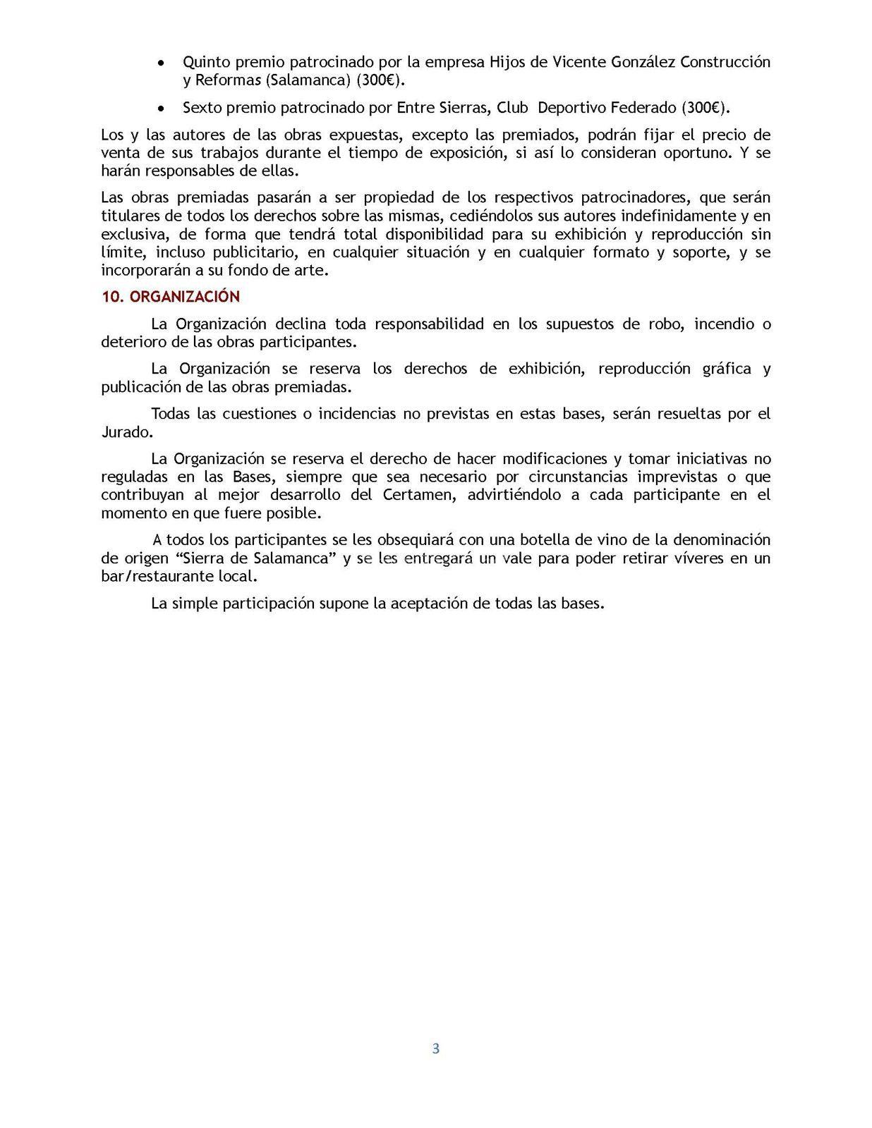 La organización declina toda responsabilidad en los supuestos de robo, incendio o deterioro de las obras participantes.
