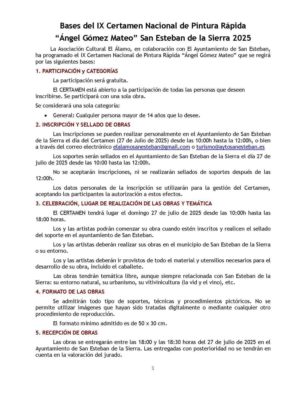 Bases del IX Certamen Nacional de Pintura Rápida “Ángel Gómez Mateo” San Esteban de la Sierra 2025