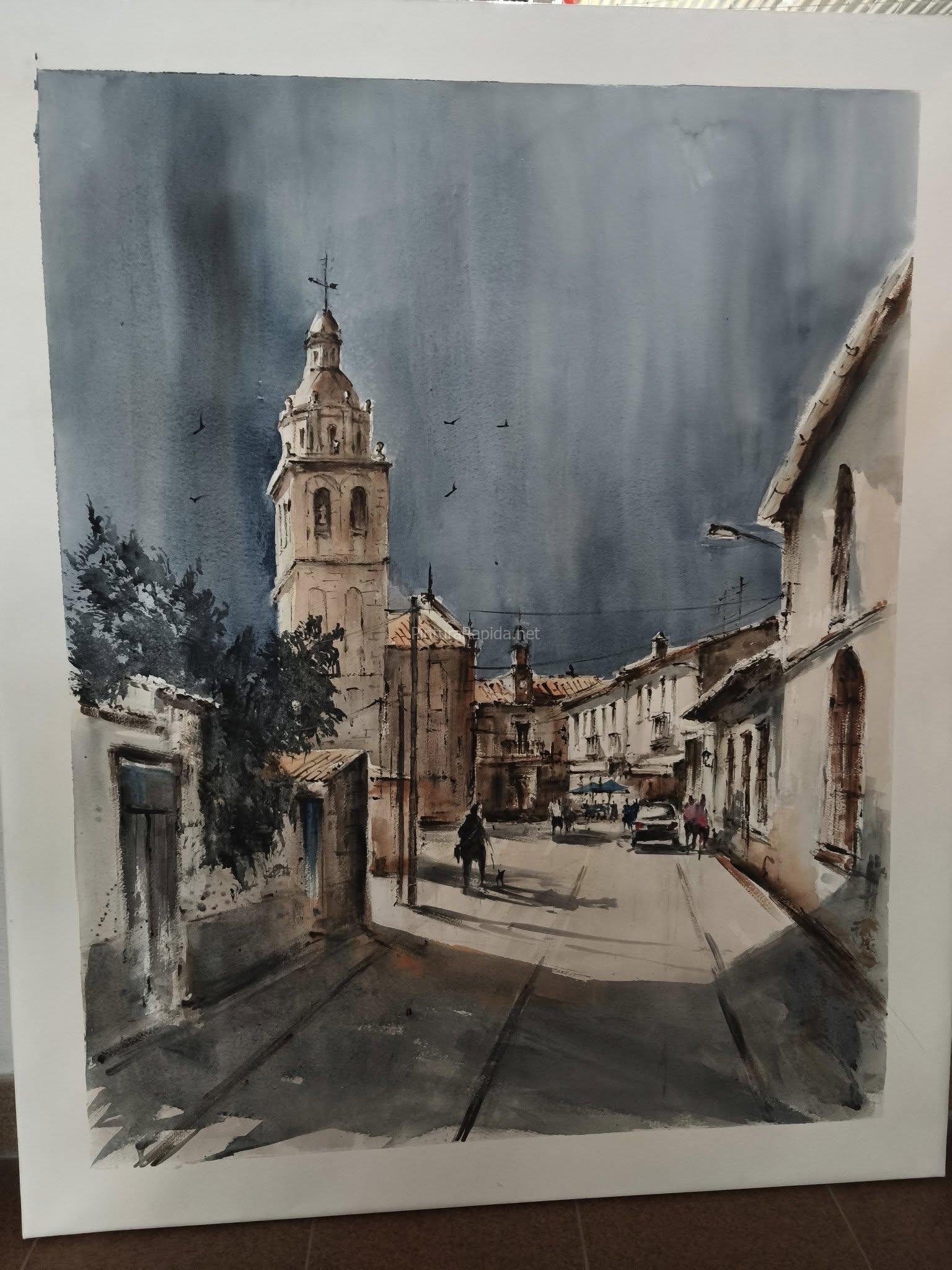 Francisco Tomás gana el Concurso de Pintura Rápida Vendimia de Serrada (Valladolid) 2025 con una obra de luz y perspectiva urbana
