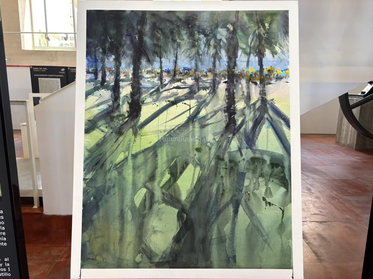 El tercer premio, con una dotación de 500 euros, fue para José Luis Encabo, quien optó por una visión colorista y vibrante de la playa de Torre del Mar. Con una composición llena de vida, su cuadro refleja el bullicio veraniego y el ambiente festivo de la costa.