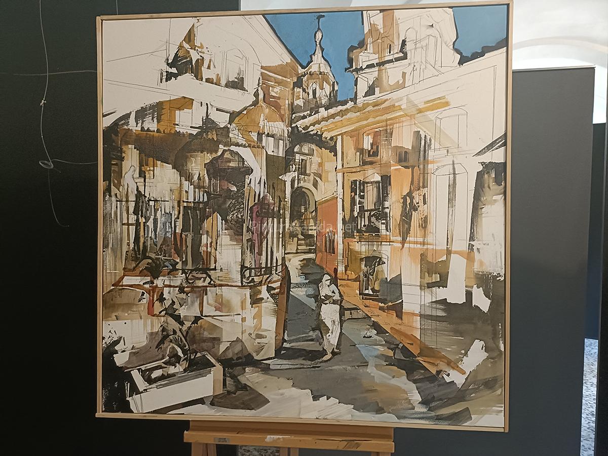 El segundo premio, de 1.100 euros, fue otorgado a Cristóbal León, que presentó una obra en técnica mixta de acrílicos y óleos. Su imponente interpretación de un acceso arquitectónico en tonos cálidos y composición clásica logró destacar por su profundidad, luz y potencia visual.