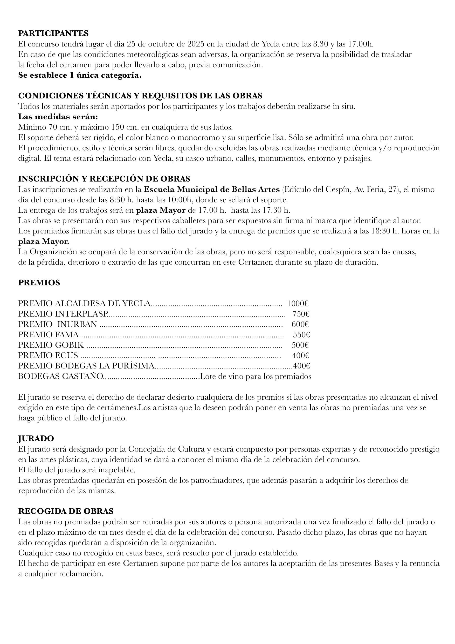 Premio Alcaldesa de Yecla …………………………………………………….. 1000 €