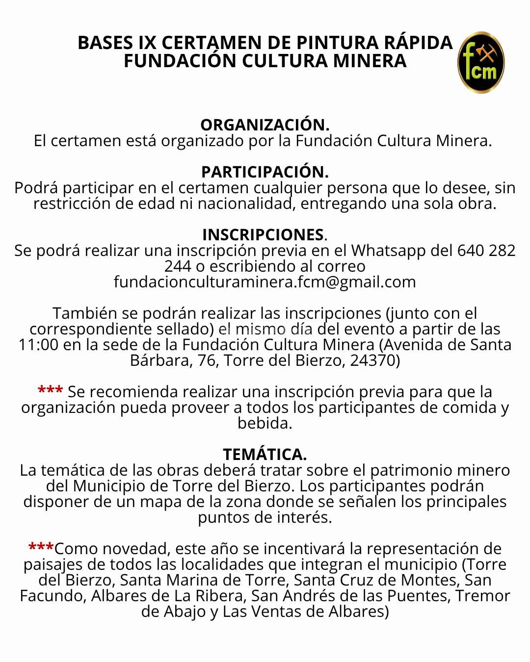 Bases IX Certamen de Pintura Rápida Fundación Cultura Minera