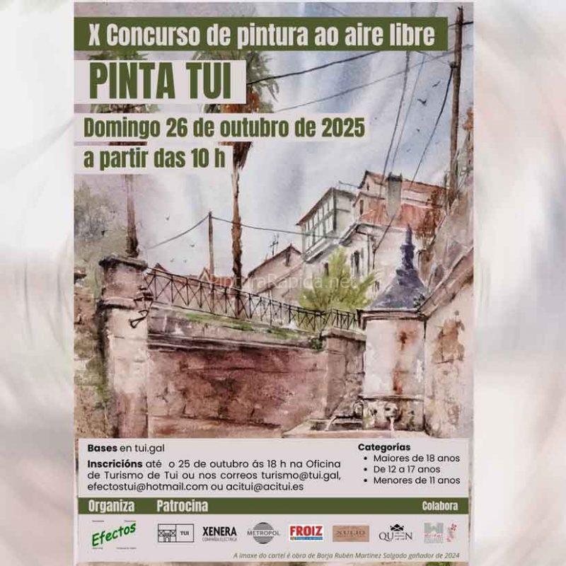 El concurso “Pinta Tui” cumple diez años como una iniciativa consolidada que mantiene su espíritu de acercar la pintura al espacio público y de promover el encuentro entre artistas y vecinos, poniendo en valor el patrimonio y la belleza del municipio tudense. La organización agradece la colaboración de las empresas y entidades patrocinadoras, así como el apoyo del Concello de Tui, que hacen posible un año más la celebración de este evento.